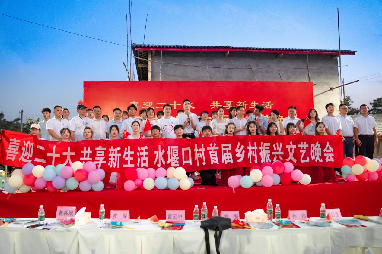 最终,水堰口村首届乡村振兴文艺晚会在新落成的村文化广场成功举行。现场500余人共同观看演出,雷云中深情献唱《共产党员好比种子》,村民也大胆上台表演,展示自己唱歌、跳舞的才艺,现场气氛热闹非凡。曾经沉睡的角落被唤醒,原本寂静的村庄一片热闹光景。
