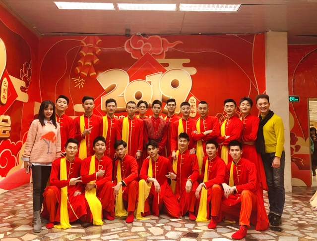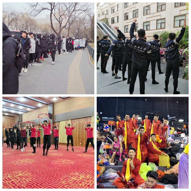 2018年12月1日,20名西华学子在带队教师路耀武、李倩雯的带领下前往北京参加排练。这些学生,几乎清一色1.8米以上的帅气男生,此次是首次受邀参加央视春晚彩排。春晚排练分秒必争,从早上九点开始,除了用餐时间,同学们把其他时间都用在排练上,有时凌晨一点左右才能回到酒店。