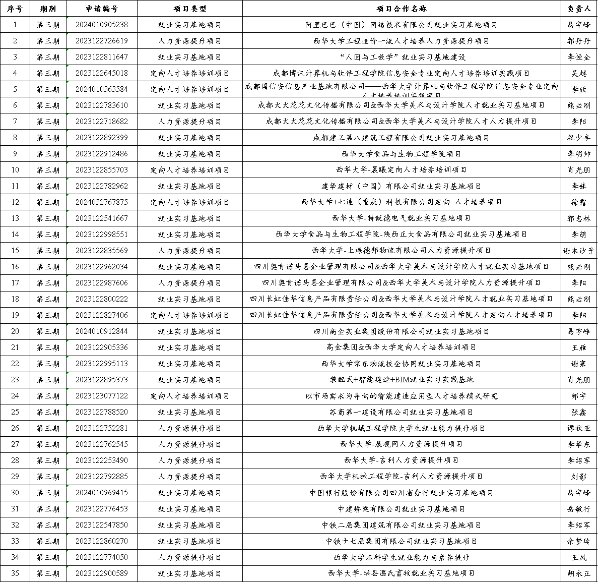 近日,教育部高校学生司公布第三期供需对接就业育人项目的立项名单,我校35个项目获批立项,较2023年增加23项,与阿里巴巴(中国)网络技术有限公司、浙江吉利控股集团有限公司、四川长虹佳华信息产品有限责任公司、苏州富纳艾尔科技有限公司、中铁二局集团建筑有限公司、中铁十七局集团有限公司等公司达成合作协议,涉及信息软件与互联网、新能源、装备制造、土木建筑、科技服务、金融等行业。