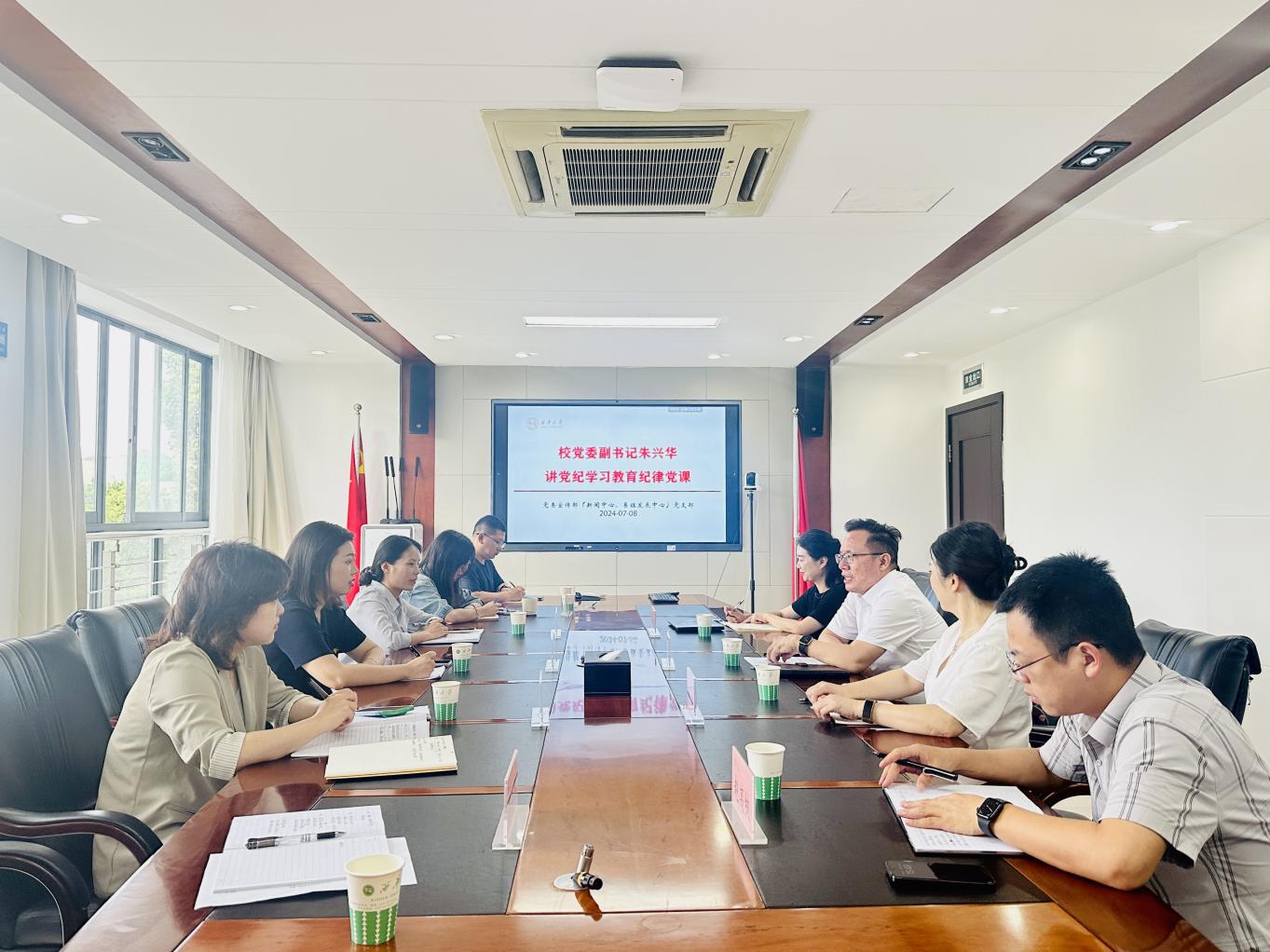7月8日下午,校党委副书记朱兴华在办公楼313会议室为党委宣传部全体党员讲授题为“增强纪律意识 强化责任担当 为助推学校高质量发展贡献宣传力量”党纪学习教育纪律党课,宣传部党支部党员参加学习。