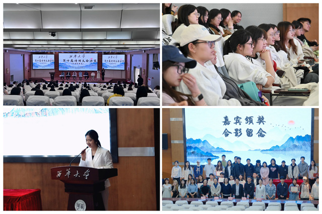 在图书馆举办的西华诗词大会上,全校百余名诗词爱好者展开文墨争锋。活动设置“诗词数独”“情景抢答”“诗词接龙”“即兴原创”等精彩环节,邀请专家解析诗作的文学意象与创作技法。此外,经典诗词诵读活动让古朴的中华诗词转化为兼具视觉艺术和生活气息的文化体验。文学与新闻传播学院团委负责人毛雪花表示:“本次诗词大会激发了青年大学生对传统文化的热爱,不但提升了大学生的文学素养,更以文化浸润心灵、以美育涵养人格。”