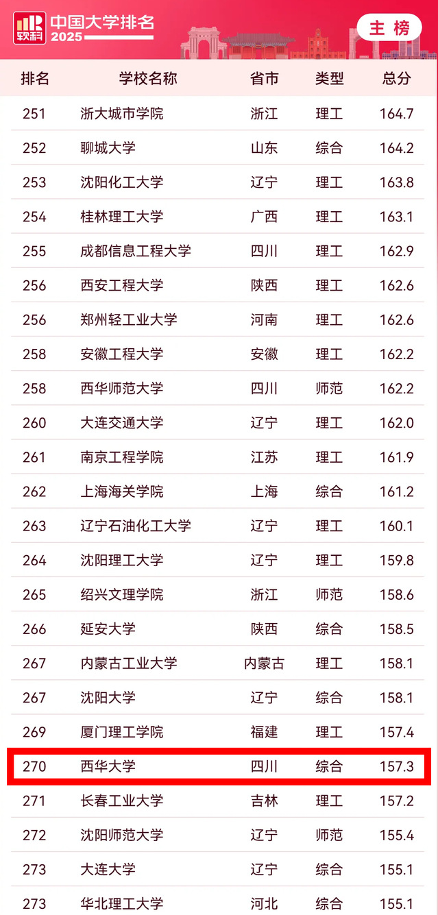 4月15日,高等教育专业评价机构软科正式发布“2025软科中国大学排名”,我校综合排名居于全国第270位,较2024年大幅提升37位,展现出良好的发展态势。