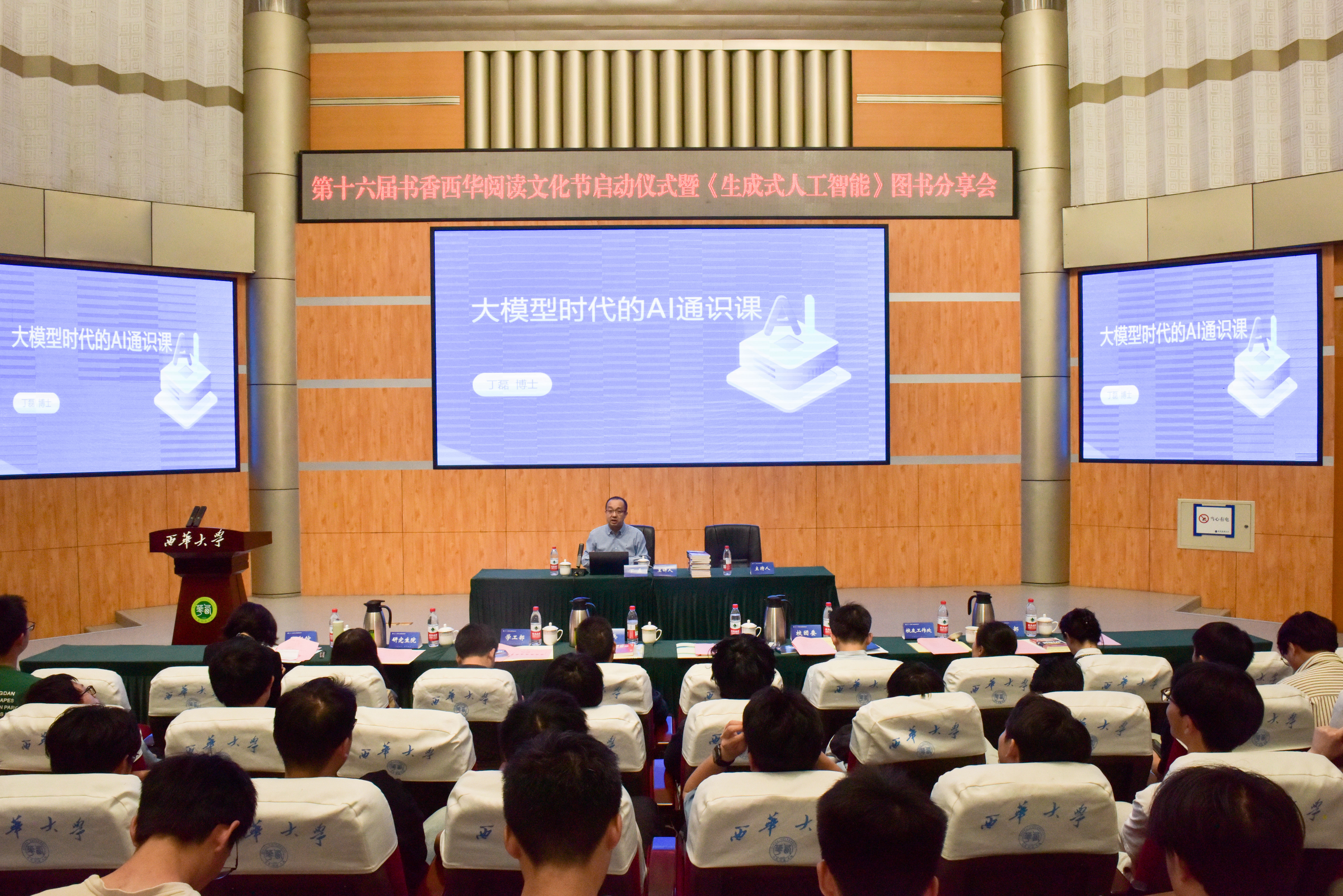在“我与作家共读一本书”环节,美国哥伦比亚大学博士后丁磊携新作《生成式人工智能——AIGC的逻辑与应用》开展AI通识讲座。他从AI的模型、框架、应用、组织等角度切入,深度解析人工智能技术如何重塑阅读与学习方式,并与师生现场互动赠书。