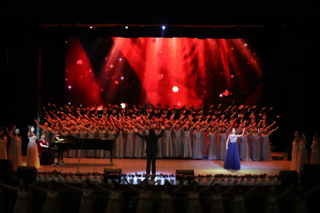最后,音乐会在混声合唱《我的祖国》《英雄赞歌》《祖国颂》中落下帷幕,气势磅礴的大合唱表达了西华人对英雄的敬意和对新中国取得辉煌成就的颂赞。