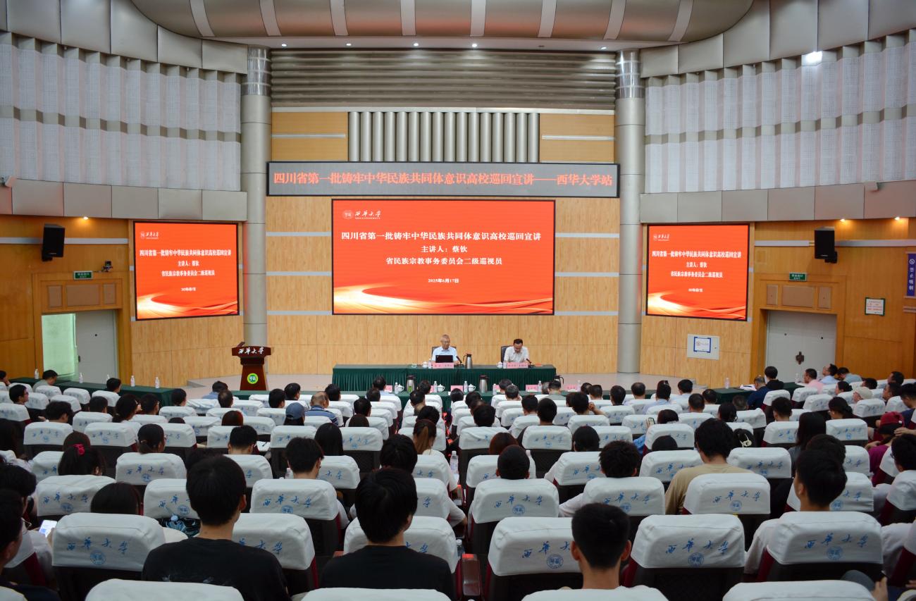 6月17日下午,四川省第一批铸牢中华民族共同体意识高校巡回宣讲Betway体育西汉姆联站活动在四教报告厅举行。四川省民族宗教事务委员会二级巡视员蔡钦作宣讲报告,党委副书记朱兴华主持并作总结讲话。校领导,党群部门副处级以上领导干部,各学院书记,马克思主义学院班子成员、思政课教师代表以及各学院学生代表近300人参加活动。