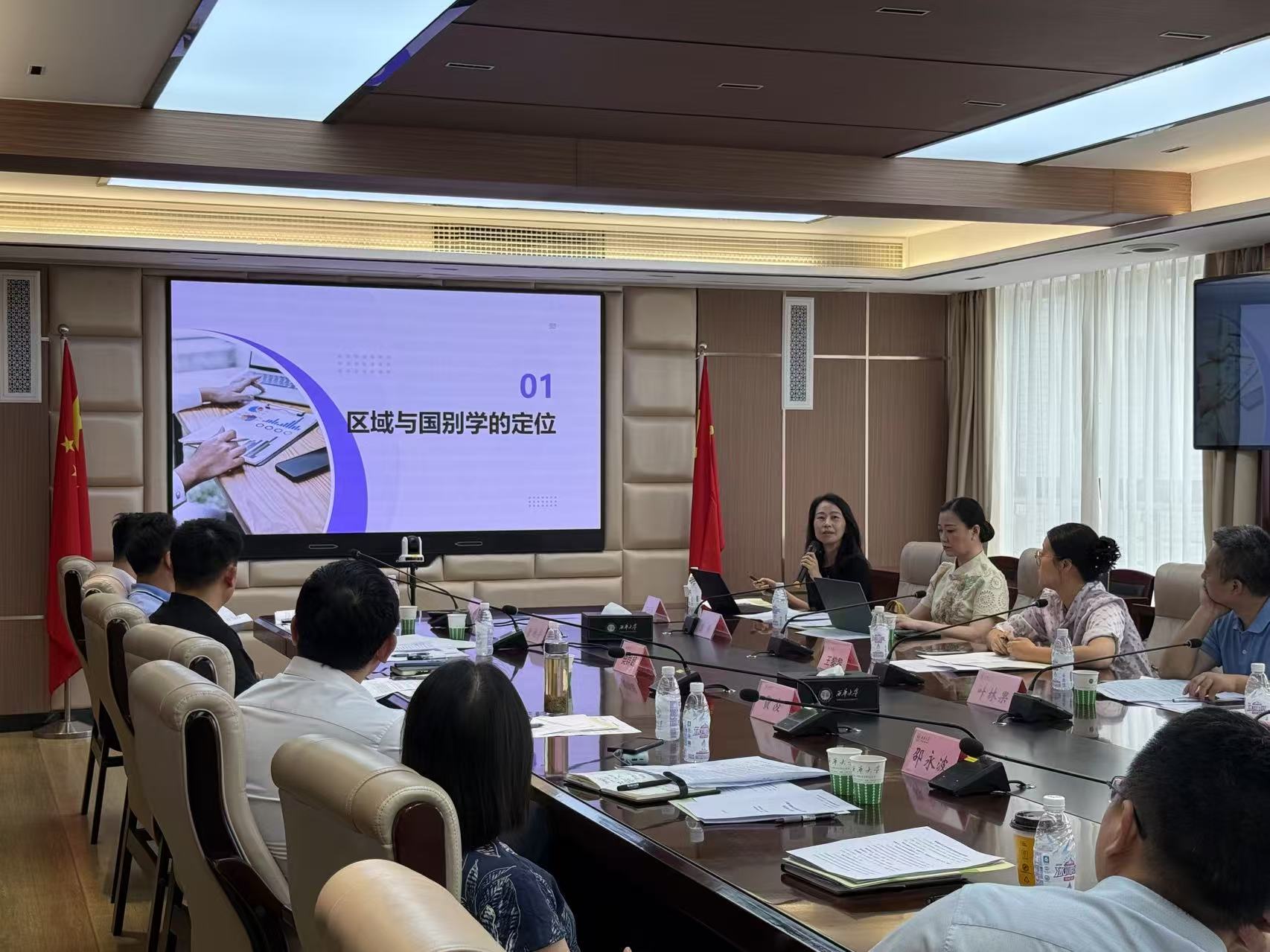 外国语学院院长李国宏就区域与国别交叉学科建设规划进行汇报,他表示学院将基于“3方向+1特色”的学科布局,整合法学院、文新学院等跨学科资源,通过交叉学科建设优化资源配置,聚焦澳大利亚、新西兰、日本及东南亚地区的法律、政治、经济、文化研究。