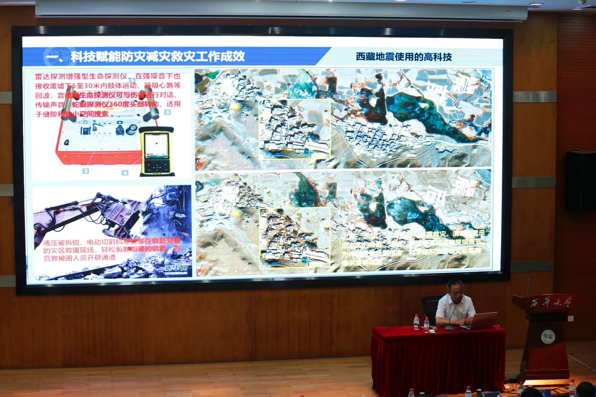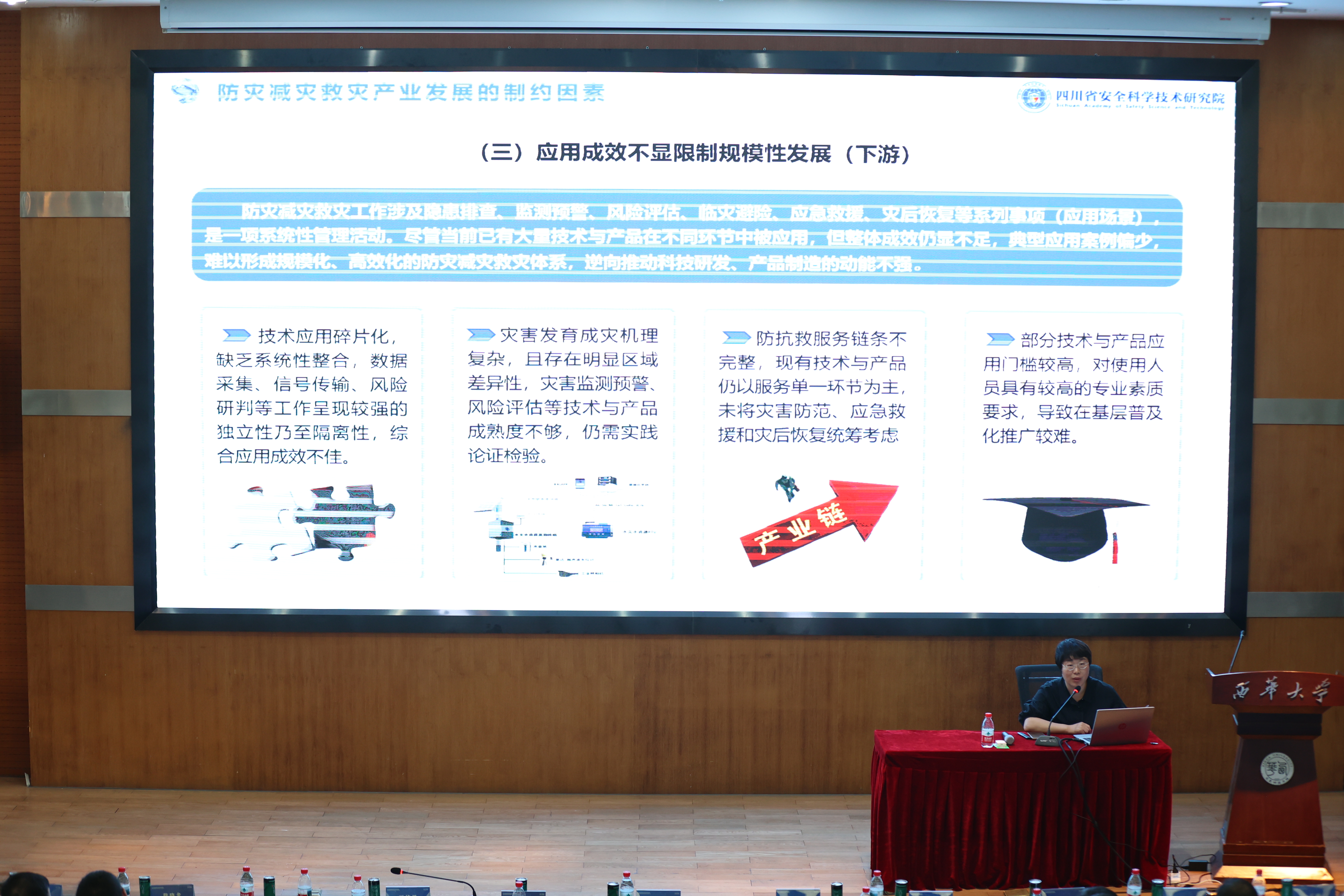 应急管理部国家自然灾害防治研究院城市灾害研究中心副主任朱月琴以《城市智慧防灾减灾研究与实践》为题;武汉大学测绘学院教授级高工、雷达专家张涛以《轻便地基干涉合成孔径雷达的研制和应用》为题;四川大学灾后重建与管理学院副研究员骆晓龙以《科技赋能防灾减灾救灾工作的领域需求与趋势分析》为题;成都理工大学地质灾害重点实验室副教授唐小川以《地质灾害防治与地质环境保护全国重点实验室应急工作汇报》为题;四川省安全科学技术研究院党委委员、正高级工程师王立娟以《科技赋能防灾减灾救灾工作的产业链规划思考》为题;Betway体育西汉姆联应急管理学院院长舒志乐以《科技赋能防灾减灾救灾工作的四川实践》为题;成都高新减灾研究所所长王暾以《自然灾害动态风险预警成效与展望》为题;中物九联化工园区安全顾问何俊以《化工园区安全风险智能化管控建设汇报》为题进行了专题演讲。眉山市应急管理局、雅安市应急管理局分享了科技在防灾减灾工作中应用的成功经验。