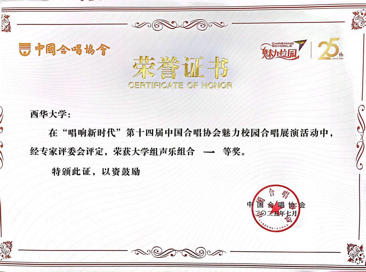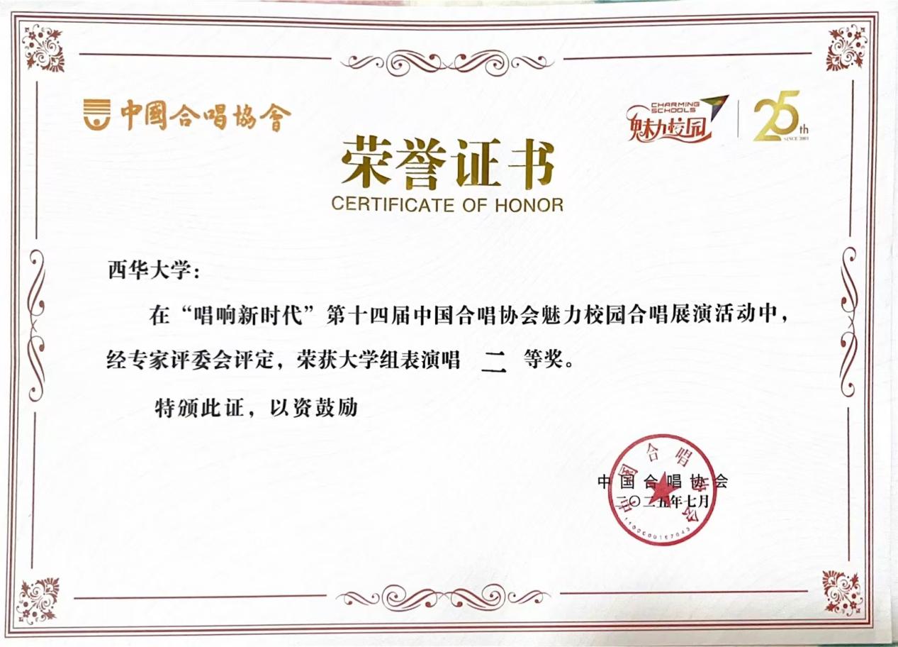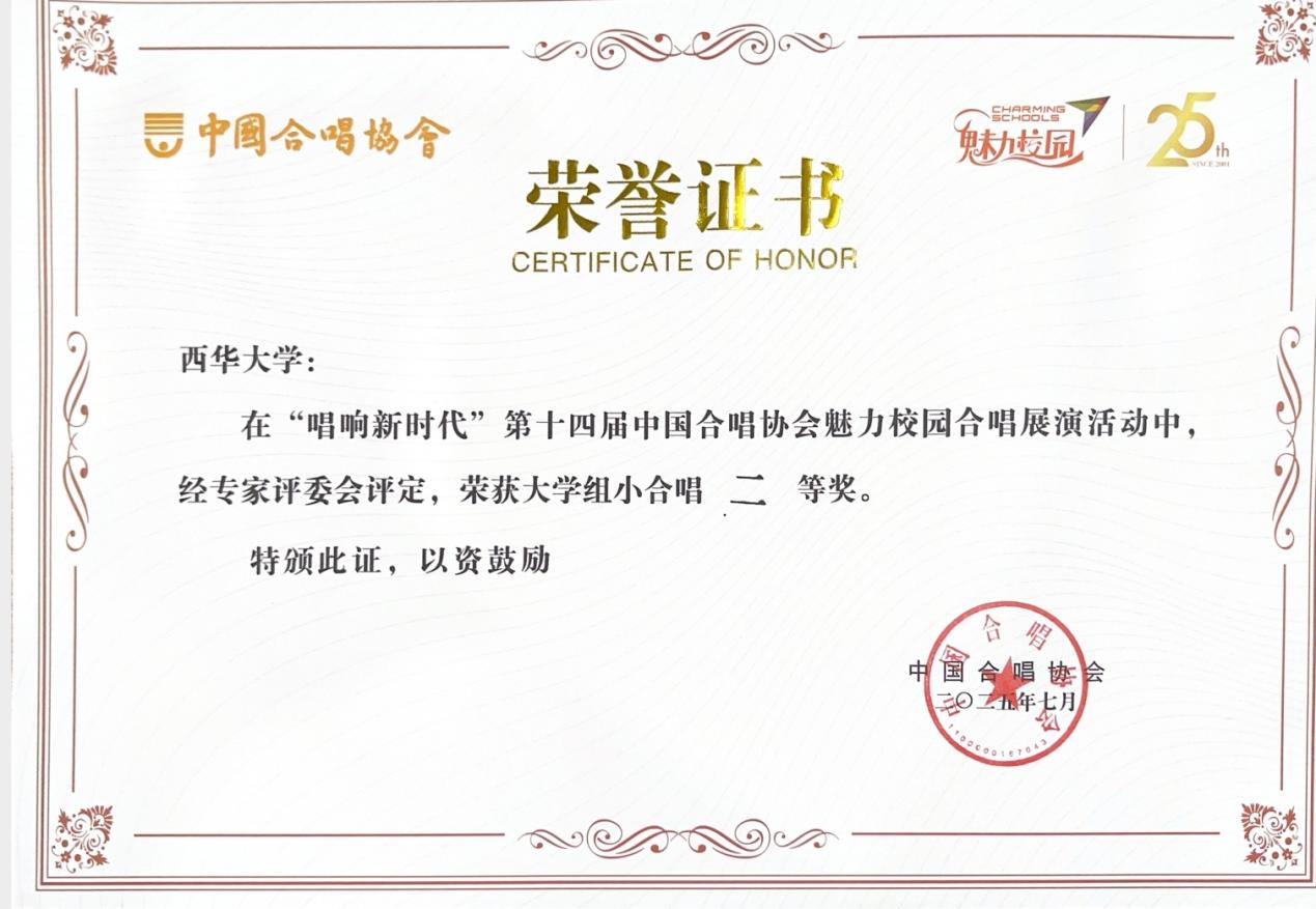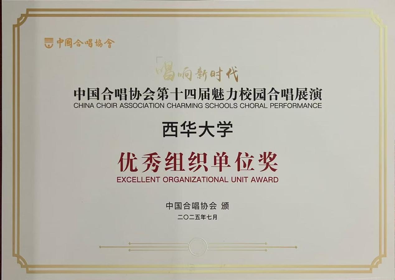 7月18日—20日,“唱响新时代”中国合唱协会第十四届魅力校园合唱展演在成都城市音乐厅举办。这场聚焦校园合唱的盛会吸引了来自全国各省(市)、自治区的75支合唱团,3000余名师生齐聚成都,唱响青春乐章,用歌声祝福祖国。在本次展演活动中,Betway体育西汉姆联获评优秀组织单位奖,音乐与舞蹈学院四个团队分别在合唱、声乐组合、小合唱、表演唱组别中斩获一等奖1项,二等奖3项。