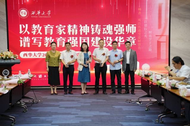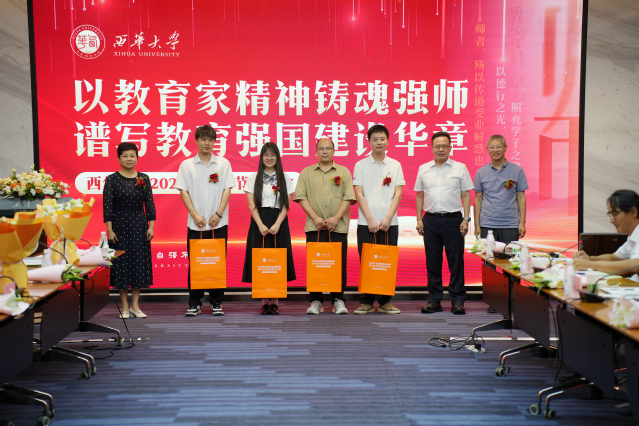 会上,校领导为资深教师代表陈祥贵教授、唐岚教授、孙仁云教授和谢维成教授颁奖,并为新进青年博士代表熊天翼、陈杰、李强和申力鑫颁发教师节礼品。新进青年博士代表为资深教师代表献花,资深教师代表为新进青年博士代表佩戴校徽。