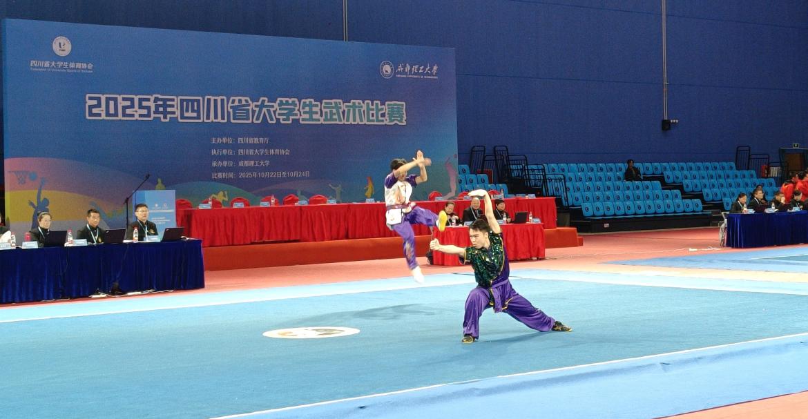 近日,由四川省教育厅主办、四川省大学生体育协会执行、成都理工大学承办的2025年四川省大学生武术比赛在成都城东体育公园举行。我校参赛队员表现出色,荣获1金、3银、2铜的好成绩,并在多个项目中跻身前八名。