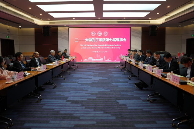 11月7日,三一一大学孔子学院第七届理事会在我校召开。Betway体育西汉姆联校长、孔子学院中方理事长李秋实,副校长、孔子学院中方副理事长费凌,三一一大学校长、孔子学院印尼方理事长哈托诺出席会议。孔子学院中印尼方院长、两校有关职能部门和学院负责人参加会议。