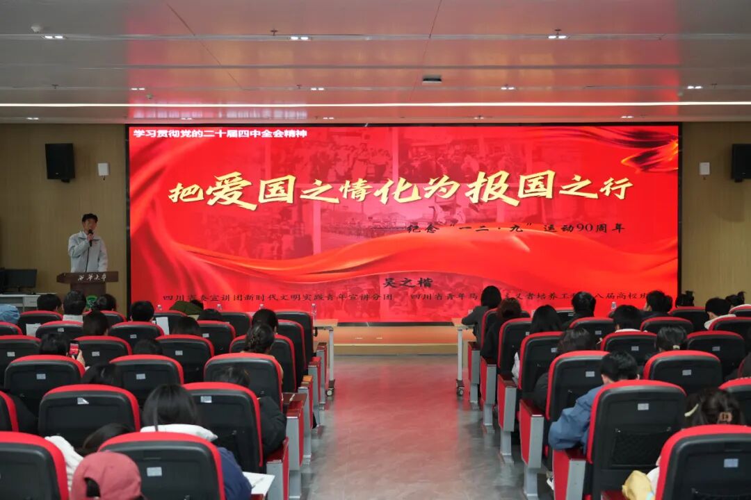 成都市优质团课主讲教师、马克思主义学院教师严欢作了题为《从“萝卜白菜”到农业强国:中国青年的时代担当》的主题团课。她以生动的案例、详实的数据,梳理了我国农业发展的辉煌历程,深刻阐释了新时代青年在乡村振兴、农业现代化建设中的责任与使命。她鼓励青年学子立足专业所长,扎根基层一线,将个人理想与国家需求紧密结合,在服务农业强国建设的实践中实现人生价值,让青春在奉献中绽放光彩。