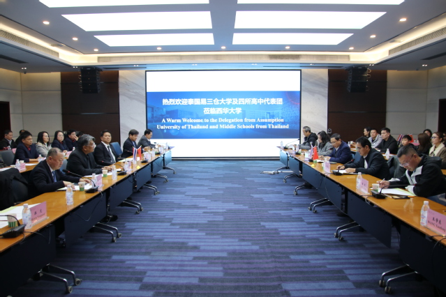 12月15日,泰国易三仓大学及吞武里易三仓学校、是拉差易三仓学校、罗勇易三仓学校、北柳府圣路易斯学校等四所中学代表团来访我校。党委常委、副校长费凌会见来宾。国际合作与交流处、招生与就业处、计算机与软件工程学院、经济学院、文学与新闻传播学院、管理学院负责人参加会见。