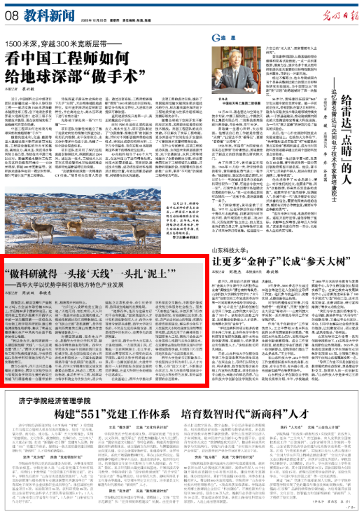12月25日,《光明日报》以《“做科研就得一头接‘天线’一头扎‘泥土’”——Betway体育西汉姆联以优势学科引领地方特色产业发展》为题,对我校进行专题报道,介绍了学校立足学科特色与人才优势,主动对接国家战略、服务区域发展的生动实践。报道全文如下: