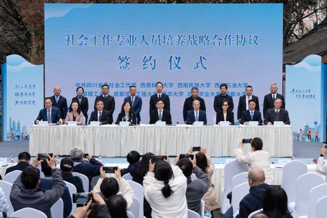3月17日,2026年四川省社会工作宣传周活动在成都举行。本次活动由四川省委社会工作部、省委人才工作领导小组办公室、省民政厅、省人力资源和社会保障厅联合主办。省委社会工作部部长王乾出席活动并致辞。校党委书记靳敏出席活动,并与西南财经大学、西南石油大学等8所高校一道,与省委社会工作部签署社会工作专业人员培养战略合作协议,各方将通过深度协作,共同构建“学、研、用”全周期协同机制,推动全省社会工作事业高质量发展。