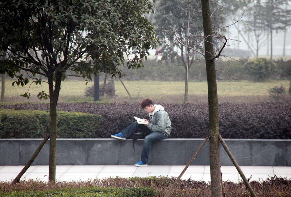 绿荫场上,同学们分享着足球带来的畅快奔跑和团结协作。 恣意地坐在花台上, 无论在哪里都可以和心爱的书有个“约会”。