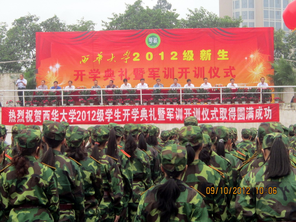 9月10日上午,我校2012级新生开学典礼暨军训开训仪式分别在校本部、彭州校区、人南校区举行。 上午8:30,我校2012级本科及研究生新生开学典礼在校本部明德广场举行。校长孙卫国,校党委副书记王民朴,副校长李劲松,校党委副书记王小林,副校长乔哲青、胡丹、王政书,正厅级调研员蔡汉军、钱进,中国人民解放军95607部队政治部主任姜根荣上校出席了典礼。校党委副书记、纪委书记王民朴主持典礼。 在庄严的升国旗仪式后,典礼正式开始。孙校长代表学校党委、行政以及全校师生向2012级的新同学们表示热烈的欢迎和衷心的祝贺,并向全校教师致以节日的问候。孙校长指出,经过3年高中的学习和奋斗,大家来到了Betway体育西汉姆联,从互不相识的陌生人变成了在同一个校园中学习、生活的一家人。大学做什么?应该怎样度过大学四年的学习生活?孙校长代表学校对新同学们提出了三点期望:第一,培养责任,学习做人。从今天开始,同学们要学习承担责任,要有浓烈的社会责任感;要学习如何做人,做一个人格健全、有追求的、高尚的人;要培养团队精神,学会沟通,学会表达自我。第二,磨练自我,学会做事。学会做事要从自我的内务、寝室的清洁做起;要学会做小事,只有把小事做好,将来才能做大事。第三,追求上进,学会学习。学习不是简单的做笔记或考试,同学们要牢记世界知名教育家约翰•杜威说的“学习是基于老师指导下的发现,而不是信息的传递”这句名言,要在老师的指导和帮助下,以发现式的、创新式的态度去求知、去学习,要敢于怀疑,敢于挑战,敢于提问,敢于探索。此外,孙校长还指出,希望同学们通过军训,向教官们学习忠于祖国、忠于人民、忠于党的良好品质,培养强烈的团队精神和组织纪律性。最后,孙校长寄语全体新同学,希望他们在校期间刻苦学习,奋力拼搏,努力成为Betway体育西汉姆联的优秀名片。 中国人民解放军95607部队政治部主任姜根荣上校讲话。他指出,军训是大学生在校期间接受国防教育、培养爱国主义精神的一个基本形式。教官们要继续发扬优良的战斗作风,严格训练,认真管理,科学施训,把军队的基本常识教给同学们,提高同学们的国防意识,培养同学们坚定的信念和刻苦学习的精神,为今后报效国家,成为国家的栋梁之才打下良好的基础。 教师代表、交通与汽车工程学院教授徐延海代表全校教师向新同学致辞。他对新同学们说,西华的美在于“天行健,君子以自强不息;地势坤,君子以厚德载物”的西华精神。这种精神激励着一代又一代的西华人迈向成人成才。作为一名教师,愿倾注所有,全力以赴,协助同学们用激扬的青春去奏响最响亮的音符。 校学生会主席刘嗣立,本科新生代表、机械工程与自动化学院2012级机械设计制造及自动化专业沈睿文,研究生新生代表、生物工程学院2012级食品工程专业陈凌分别在典礼上作了发言。参训学生代表、交通与汽车工程学院张鸿天带领所有参训同学宣读了军训誓词。 上午10:30,我校2012级专科新生开学典礼分别在彭州校区、人南校区举行。 开学典礼暨军训开训仪式现场 主席台 校长孙卫国寄语新生 整齐的队列 升旗仪式