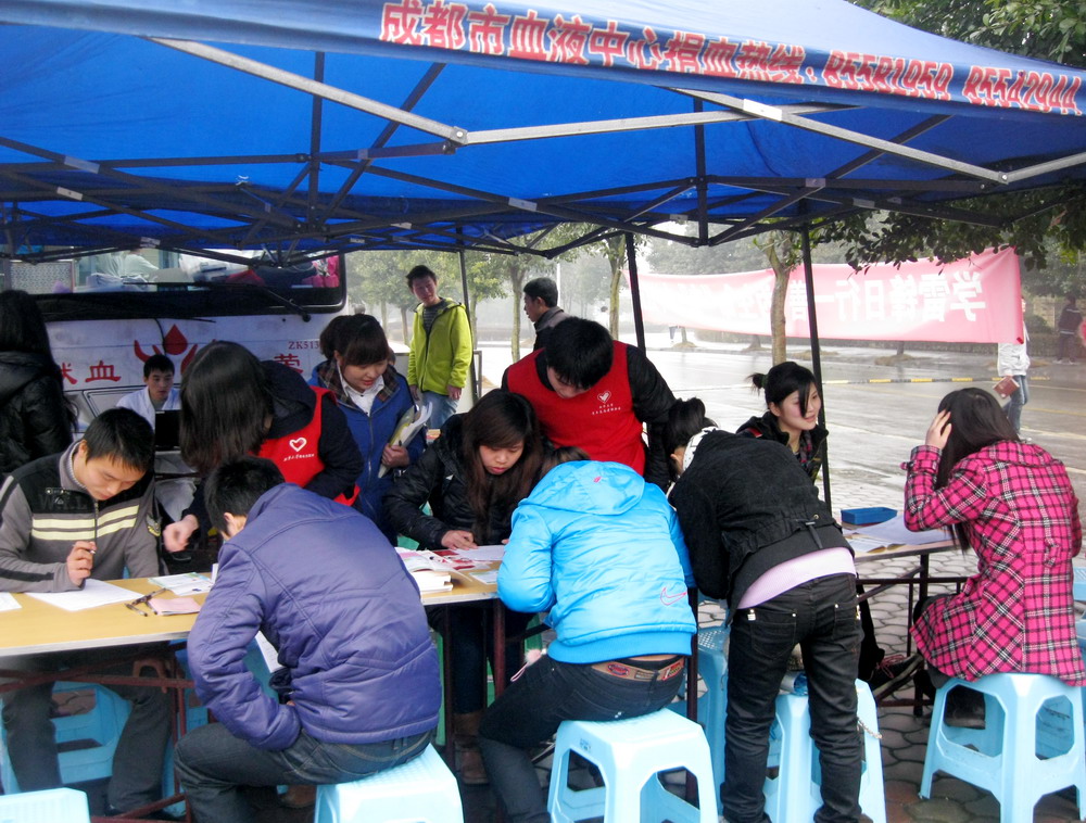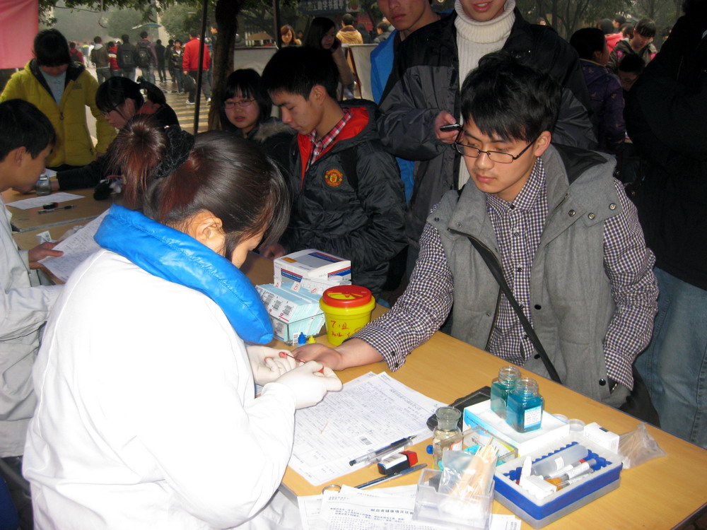 填报个人资料及健康问卷、登记电脑资料、量血压体检、验血,同学们在一批志愿者的帮助下有条不紊地进行着献血前的准备工作。如果检查顺利,就可以登上献血车,献血过程大约10分钟,休息片刻后便可以拿到献血证。因为提前从微博上看到了无偿献血的资料,不少同学都提前做好了准备,晚上休息好,提前吃午饭,保持良好的精神状态。有的学院以团支部活动的形式,把同学们号召到献血车前,自愿献血;有的同学更是把同寝室的同学和好朋友都叫上,大家一起献血,相互拍照留念。