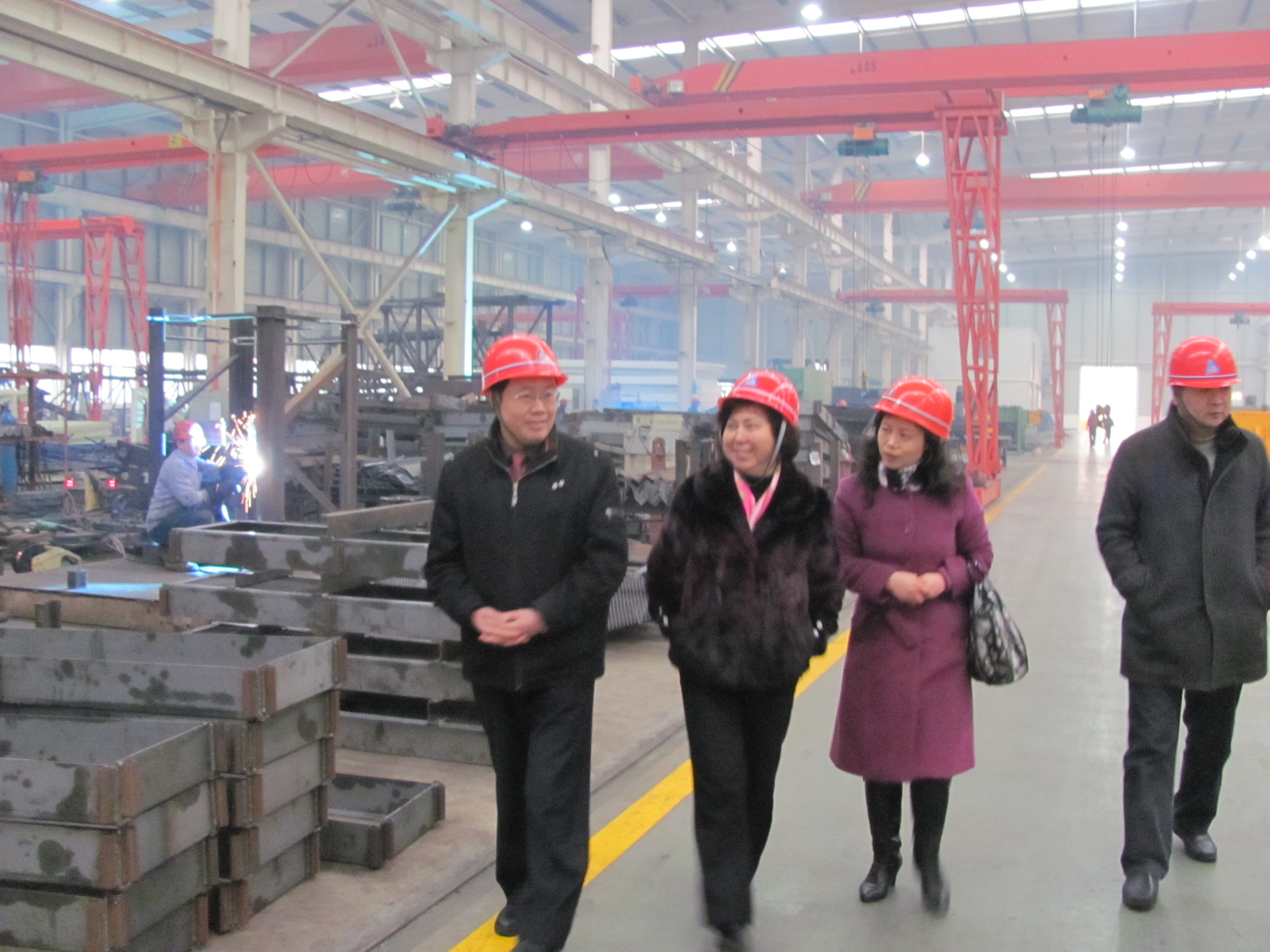 公司董事长付尤东和校友郭亚非对蔡汉军副校长一行表示热烈欢迎,并向大家介绍了公司的基本情况和发展历程。蔡汉军副校长向郭亚非校友对母校的关心和支持表示感谢,并对郭亚非校友取得的成就表示祝贺。他表示,母校一直在关心和关注校友的成长,希望郭亚非校友加强与母校的合作与交流,带领员工把公司做大、做强。在郭亚非校友的陪同下,蔡汉军副校长一行参观了该公司塔机车间、混凝土搅拌站和挖机车间,观看了油漆涂装生产线、挖掘机总装线等。
