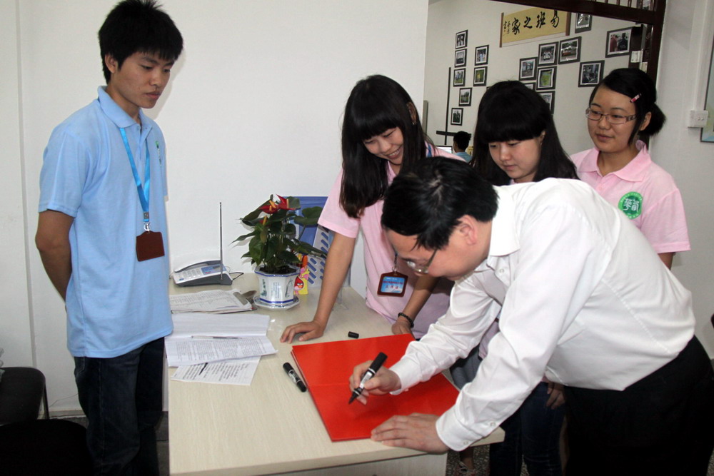 合影 高德毅副书记参观易班学生工作站并题词 |
