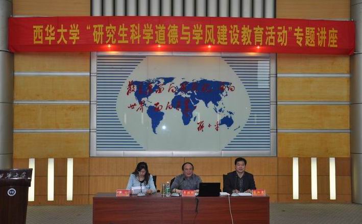 4月18日下午,我校 “研究生科学道德和学风建设教育活动”专题讲座在四教报告厅举行,生物工程学院车振明教授,学生工作部、研究生部负责人,各学院的研究生班主任和部分研究生参加了本次活动。 作为此次专题讲座的主讲人,车振明教授以“当代研究生的定位与成长途径”为题,与研究生们畅谈科研经验及科研道德。在讲座中,车教授用自己多年从事科研工作的鲜活事例并结合我校研究生培养的实际情况,生动地阐述了当代研究生加强科学道德和学风建设的重要性、研究生的正确定位、研究生的素质教育、研究生的专业教育与能力培养等方面的内容,使在场的广大研究生深受启发、受益匪浅。 专题讲座结束后,学生工作部和研究生部共同对全校研究生发起“遵守学术规范、坚守学术诚信、完善学术人格、维护学术尊严,摒弃学术不端行为”签名活动,在场师生共同在条幅上签名,表示将严格遵守学术规范,维护学术尊严。 此次活动是贯彻落实省科协、省教育厅《关于开展科学道德和学风建设宣讲教育活动的通知》(川科协【2011】35号)精神和有关要求的具体体现,也是本学期我校研究生科学道德和学风建设教育系列活动之一。 专题讲座现场 现场签名 |