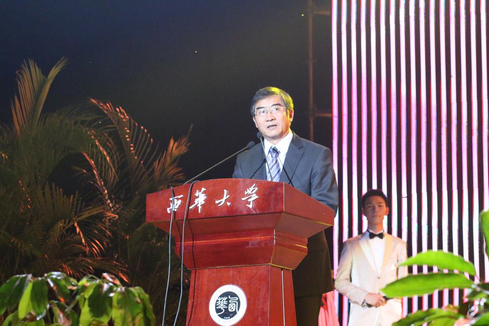 为欢迎新同学和新教师,庆祝第29个教师节,增强师生爱校荣校情感,表彰优秀教师,营造尊师重教良好氛围,9月9日晚7:30,第六届“西华秋韵”文艺晚会在临江苑田径场举行。凤凰卫视资讯台总编辑兼首席评论员、我校凤凰学院名誉院长阮次山先生,在校学生家长、西藏军区文工团副团长、国家一级演员巴桑女士作为特邀嘉宾出席。四川省文联、四川省教育厅文艺主管部门的领导,凤凰卫视、凤凰教育集团、富士康科技集团等企业界的嘉宾,全体校领导,优秀校友代表和离退休教师代表,教职员工代表,2013年新进教师及2013级全体新生观看了晚会。 随着历届西华秋韵短片的放映,随着整齐划一的倒数声,随着现场越来越热烈的氛围,第六届“西华秋韵”文艺晚会正式拉开了帷幕。作为西华校园的精品特色文化活动之一,每一年的“西华秋韵”都会有亮点刷新,今年也不例外。 校领导深情寄语:分享西华精彩荣耀,肩负西华辉煌明天