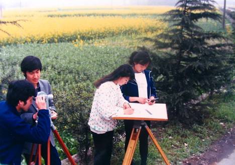 最初校园以沱江河为界,东边仅至图书馆游泳池旁。校园周围被层层叠叠的农田包围着,阳春三月,绿油油的麦苗,黄灿灿的菜花一望无际。徜徉其中,人与自然亲密无间,花香扑鼻,沁人心脾,恍若融进一幅绚丽画卷中。夏收季节,麦浪滚滚,金秋时分,稻谷飘香,一派恬静、优雅的田园风光。校园内也有几处农田,与校园外一样适时耕耘,变换种植着时令的作物。现在的教工6幢周围是几丛竹林和几间青瓦房、茅舍,俨然是一处独立的农家院落,校园内外充满着浓厚的泥土味和质朴的田园气息。70年代,6层20多米高的1教的落成,在郫县与成都广阔的乡村田园,独领风骚,成为一道亮丽的风景!